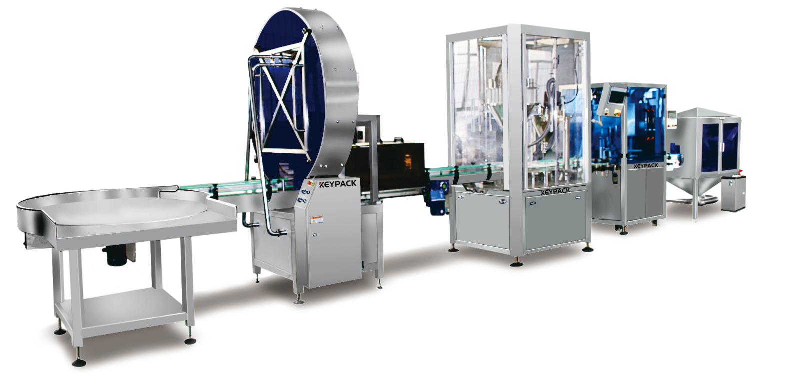 應用于各種粉末、顆粒類產品的自動計量、灌裝、封口、貼標、打碼等自動化生產線,按照常規聽裝流程配置,整個生產過程自動化程度高。